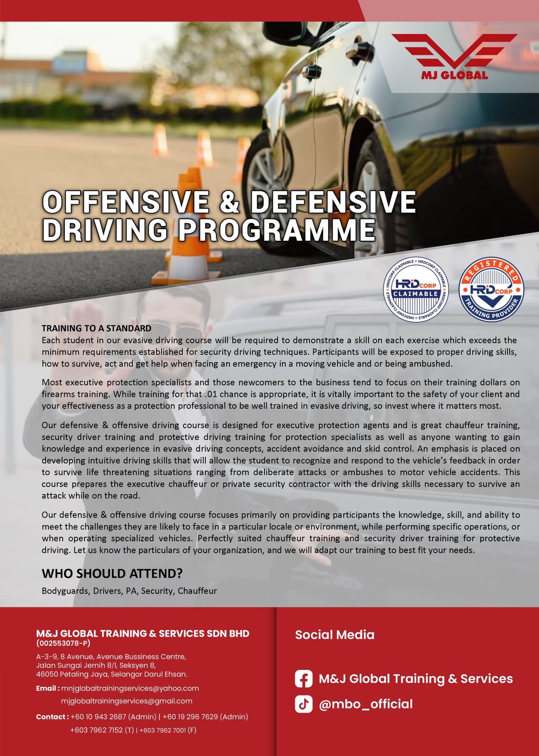 • Provide comprehensive training in Offensive Defensive, Integrity & Protocol for drivers.